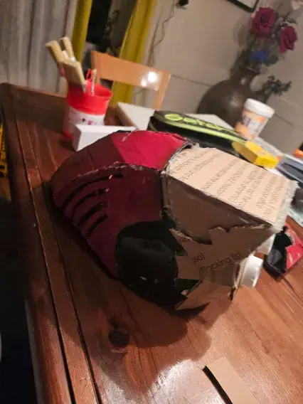 The first steps of the Project. I made a template out of paper and traced those onto a huge piece of cardboard. Then glued all the pieces together with hot glue.